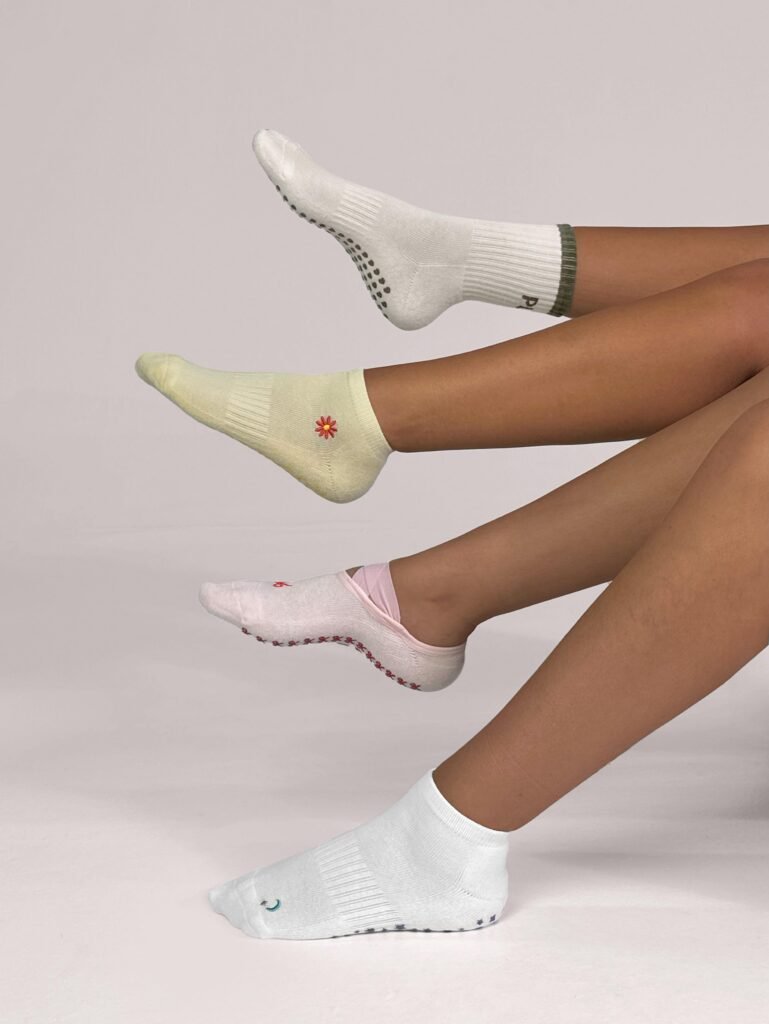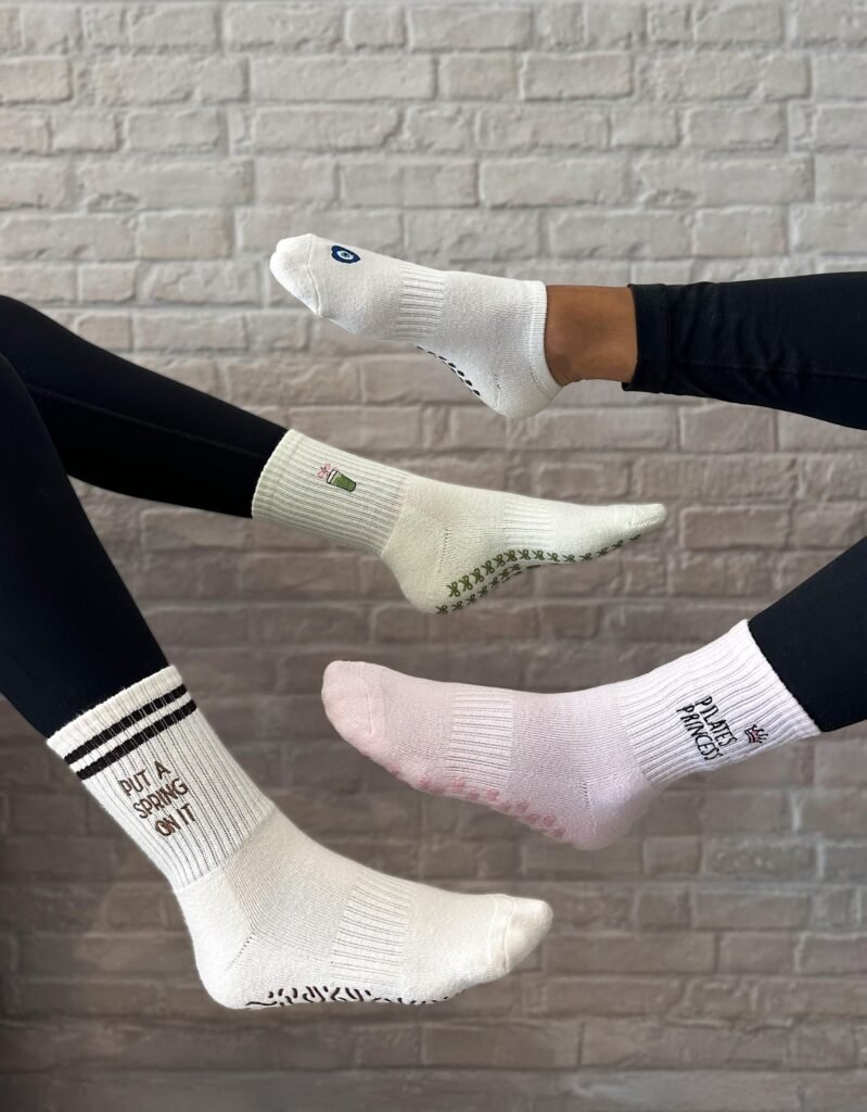 This philosophy is visible in the brand’s collections, where every design tells a different story. The best-selling style, “Charmed Grip”, features a heart-shaped grip for stability, and a delicately embroidered charmed eye on the sock for protection and flair. Another, “Pilates Princess”, pairs a crown design with regal grip details. From bold and playful to calm and grounding, each piece offers a distinct personality that customers can connect with.