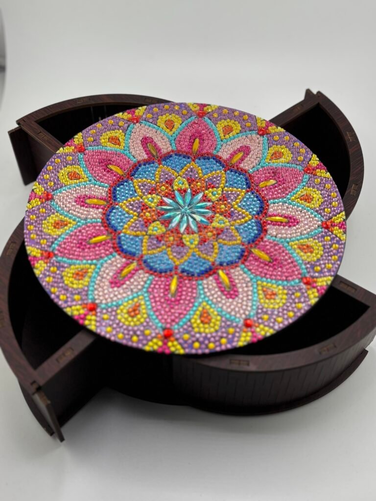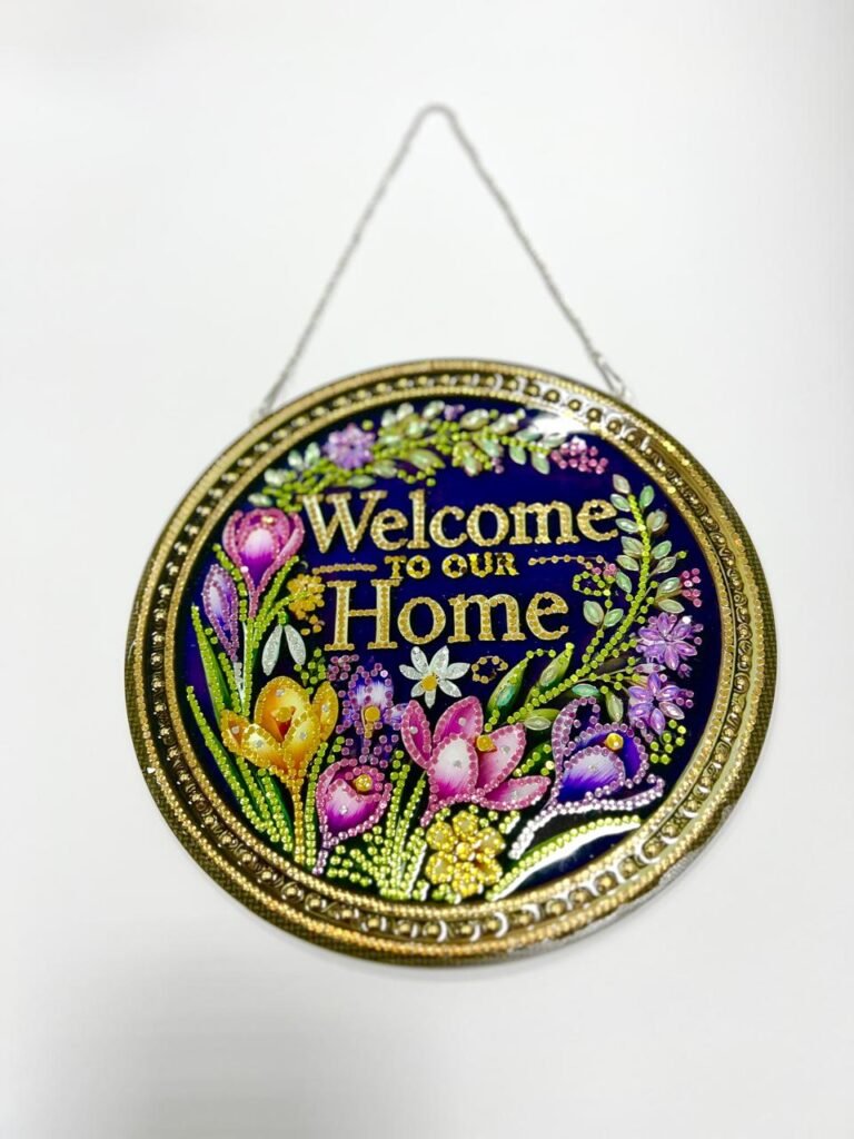 Susan also applies a resin coating over all crystal work, ensuring durability, long-lasting shine, and protection over time. Recently, she has expanded into full resin art, creating entirely resin-based pieces and detailed diamond art designs. These include customized pictures, themed artwork, and gift items that are not typically found in conventional stores. The result is a collection of affordable yet highly unique products that serve both decorative and emotional purposes.